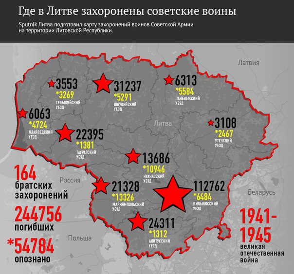 Карта захоронений советских воинов, пожертвовавших собой ради освобождения Литвы от немецких захватчиков. Инфографика Sputnik_lietuva #НашаОбщаяИстория Фотогалерея: