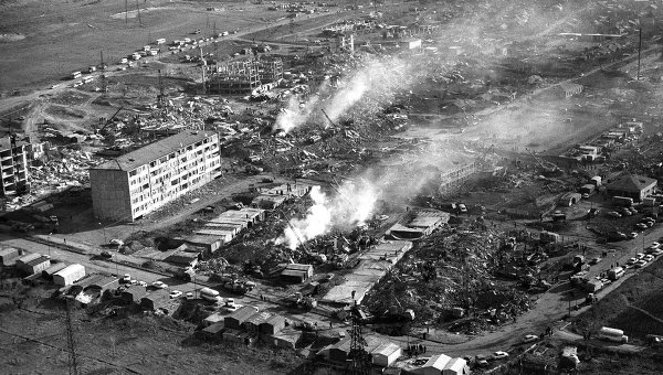 Армения вспоминает жертв землетрясения 1988 года В 11 часов 41 минуту 7 декабря 1988 года на севере Армянской ССР произошло одно из страшнейших землетрясений в истории человечества. Подземные толки за считанные секунды уничтожили город Спитак и нанесли разрушения городам Ленинакан (Гюмри), Кировокан (Ванадзор) и Степанаван: в общей сложности от стихии пострадали более 370 населенных пунктов (58 из них были разрушены полностью) Эпицентр землетрясения находился в Спитаке, - подзем... Фотогалерея: