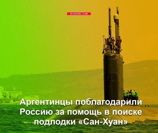 Аргентинцы поблагодарили Россию за помощь в поиске подлодки «Сан-Хуан» Российский ВМФ продолжает оказывать помощь ВМС Аргентины в поиске пропавшей субмарины «Сан-Хуан». Об этом сообщает Министерство обороны на своей странице в Facebook. Примечательно, что под постом десятки комментариев на испанском от жителей Аргентины, которые благодарят РФ за помощь. «Спасибо, Россия за эту большую помощь. Будем надеяться, что San Juan будет найден. Привет из Аргентины», - пишут пользователи F... Фотогалерея: |